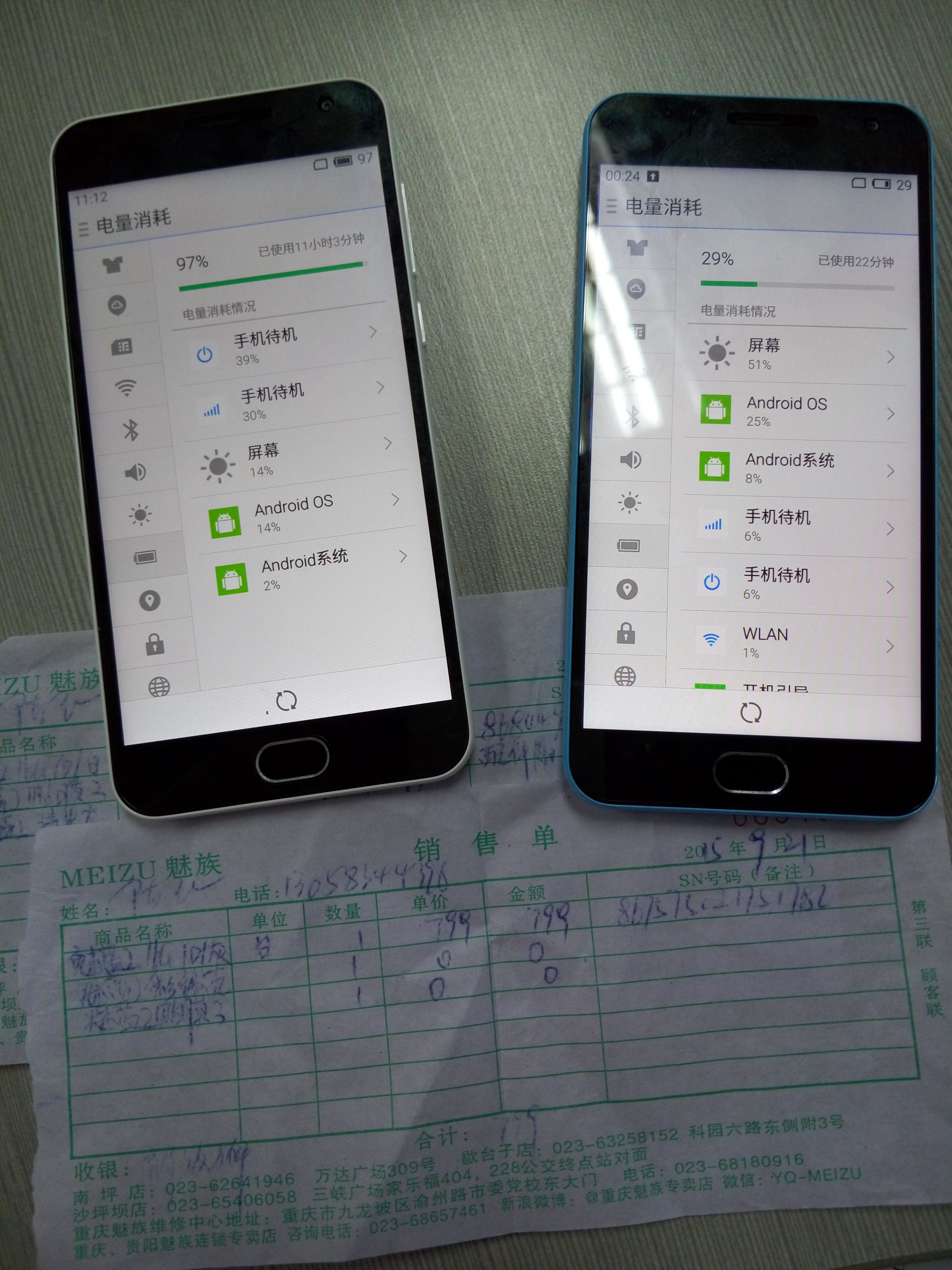 入手新机还是蛮高兴的,期间两只手机都使用了会,表现还算OK~21号晚把两只手机都充满电,第二天一早(也就是昨天)把电源拔掉,然后我把它们扔到衣橱角落待机(未插SIM卡,未连接wifi)。