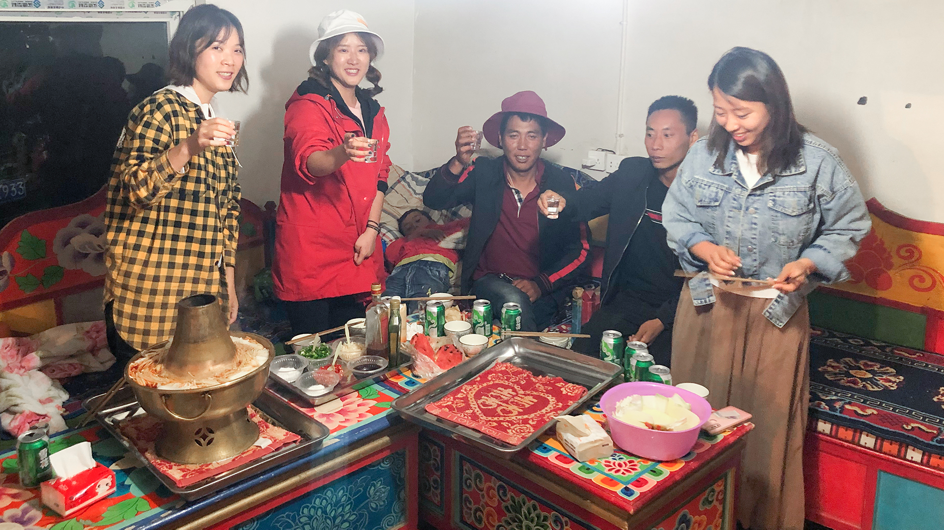 下午八点,直到阳光的余晖彻底散尽,我们去到若尔盖县城吃晚饭。别的不说,在那家成都串串店里我吃到了最扎实的香菜牛肉,那牛肉之大块、鲜嫩有嚼劲,让此时正在写字的我胃好生难受!估计是肉吃的比较多抗寒,彼时外面的温度约零上五六度,而我…仍然穿着上文那套短衣短裤,所有人遇见我都会夸一声:小伙子,身体不错啊。