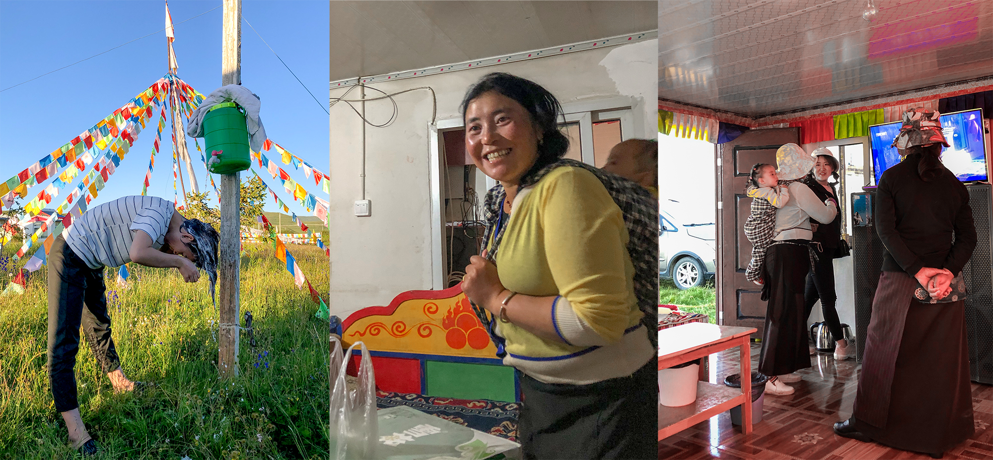 其间,我们在路边的牧家乐骑了两次马,纷纷觉得有趣好玩意犹未尽,正寻思要不要再找个地方来个策马奔腾时,遇一藏族大叔以“免费骑马”为口号在路边揽客,瞬间吸引了我们。彼时我们在路边的观景台咔嚓了几张照片正要离开,他过来把我们拦住,说他们家的房间配套齐全,价格便宜还可以免费骑马……犹豫间一对年轻的成都夫妇也过来搭话,据她们说前边儿红原县城因为有音乐节房价普涨,定不到房。一经合计,咱们结伴而行,跟随那大叔去看房。