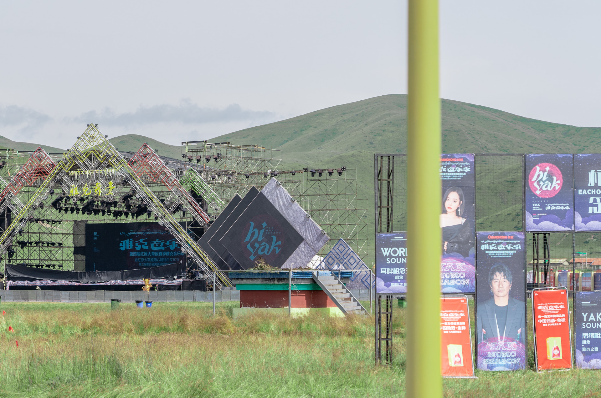 这地方挨着县城,位置较高。往后能看到远处的若尔盖县城和牛羊