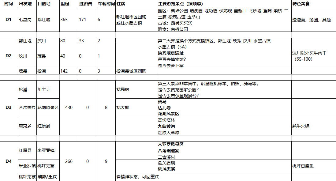1. 0. 阿坝州自驾游行程规划(2019)
