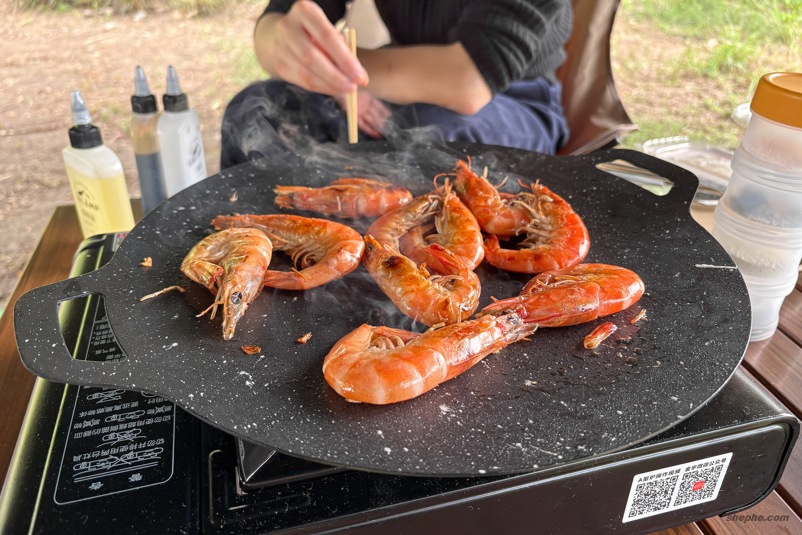 如下图所示,我们摆了一个卡式炉,用来烤饼子、烤肉,同时还放了一个小炉子烧水煮面,再加上一些餐具、调料之类的东西,桌面空间基本就被占满了,活动余地其实不大。
