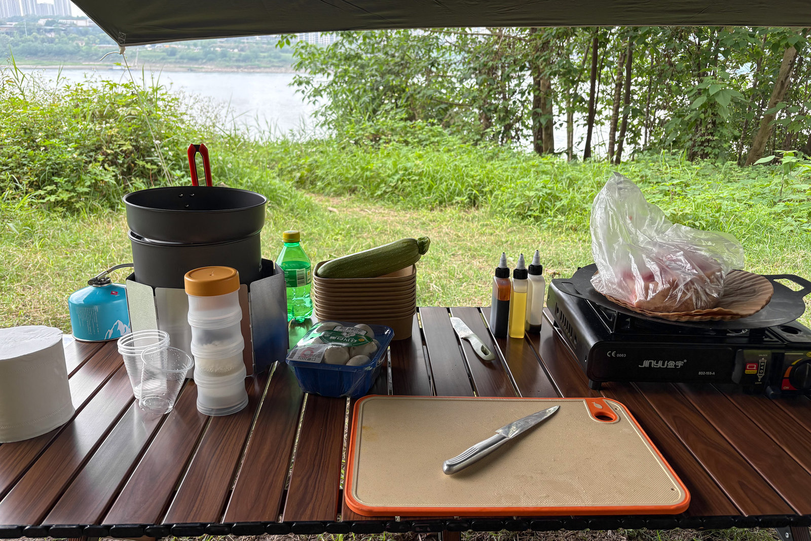 如果你也有露营的打算,我多少还是有一点点经验可以分享的。首先一点:桌子、天幕和露营车,一定要“买大不买小”。我这两次出去都不过夜,人员配置是三大一小,这张 120×60 的桌子也只能说是刚刚够用(还好当初退掉了那张 60×90 的蛋卷桌,不然肯定不够)。我们几个还算不太能吃的类型,但如果有小孩或者老人一起出行,空间一定要尽量预留充足,不然后面用起来真的会很局促,你懂的。