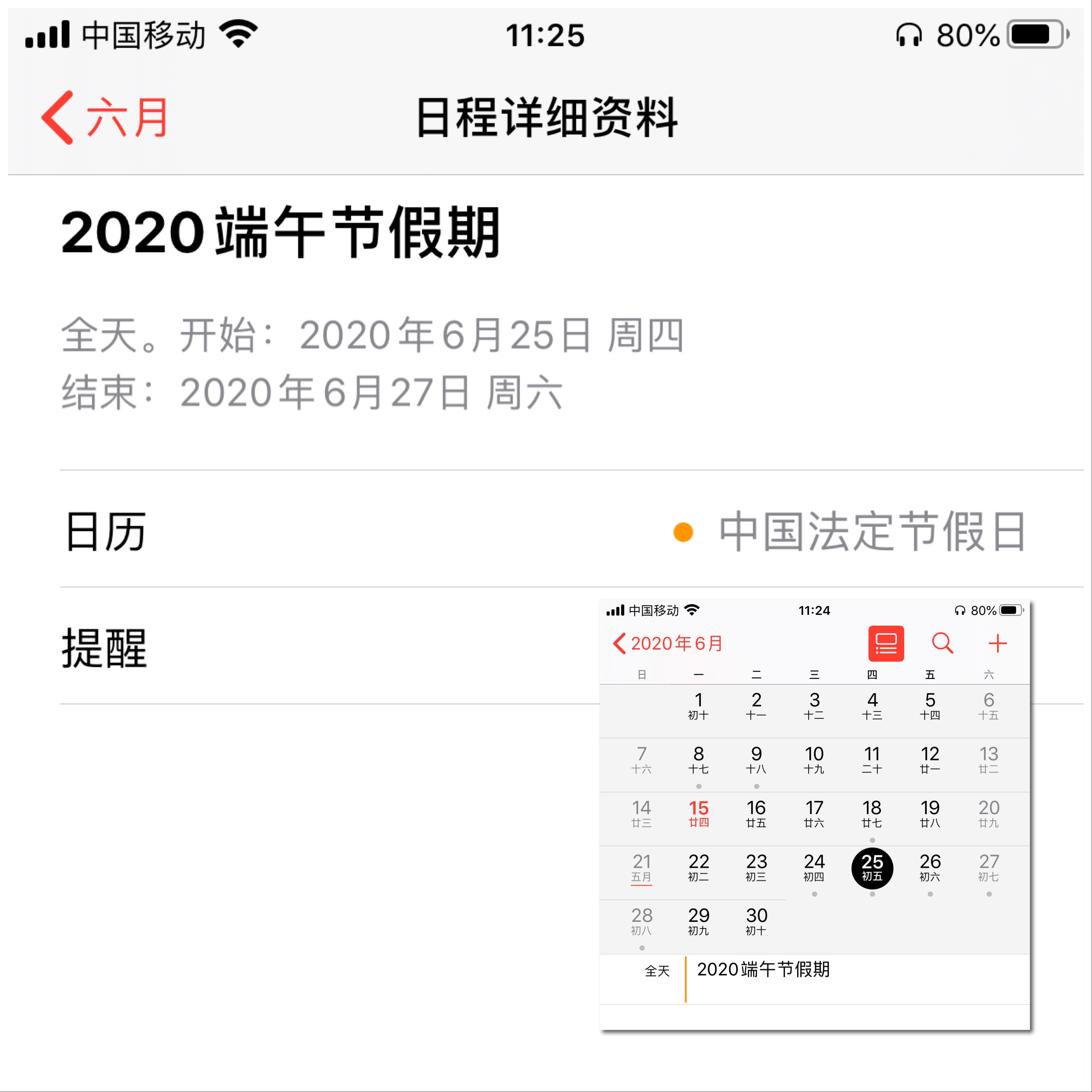 iPhone 日历小巧实用,除了日历查询以及常规的定制日程提醒之外,其实咱们还可以稍微自定义一下,让它更智能一些,实时同步我们国家的法定节假日放假安排,具体操作如下(本方案来自@范明明's Blog):